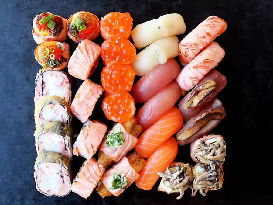 6 sushi salmão, 4 sushi atum, 8 uramaki salmão trufado, 6 jô salmão, 8 sushi salmão trufado, 8 uramaki salmão com cream cheese, 10 ayumi roll, 8 tekkamaki, 6 jô salmão com cream cheese, 4 shakemaki