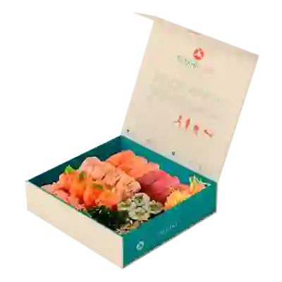 3 sushi salmão 3 sushi atum 4 jô salmão 4 sushi salmão maçaricado4 hot roll brócolis com crosta de quinoa4 kappamaki4 uramaki salmão com crispy de couve4 gunka pepino com salmão e crispy de batata doce4 uramaki salmão trufado