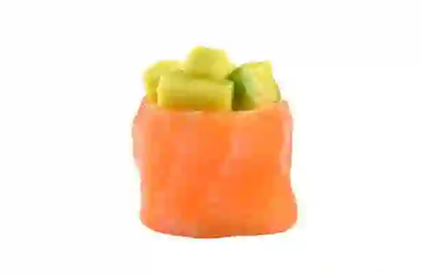 Uramaki de atum, com abacate coberto por tartar de atum e ovas de massagô com toque spicy
