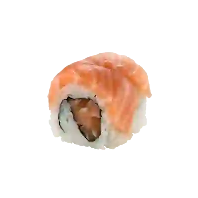 Enrolado de arroz por fora com recheio de salmão e envolto por salmão