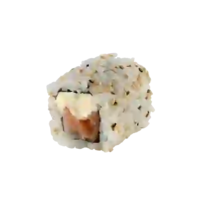 Enrolado de arroz por fora com recheio de salmão e cream cheese